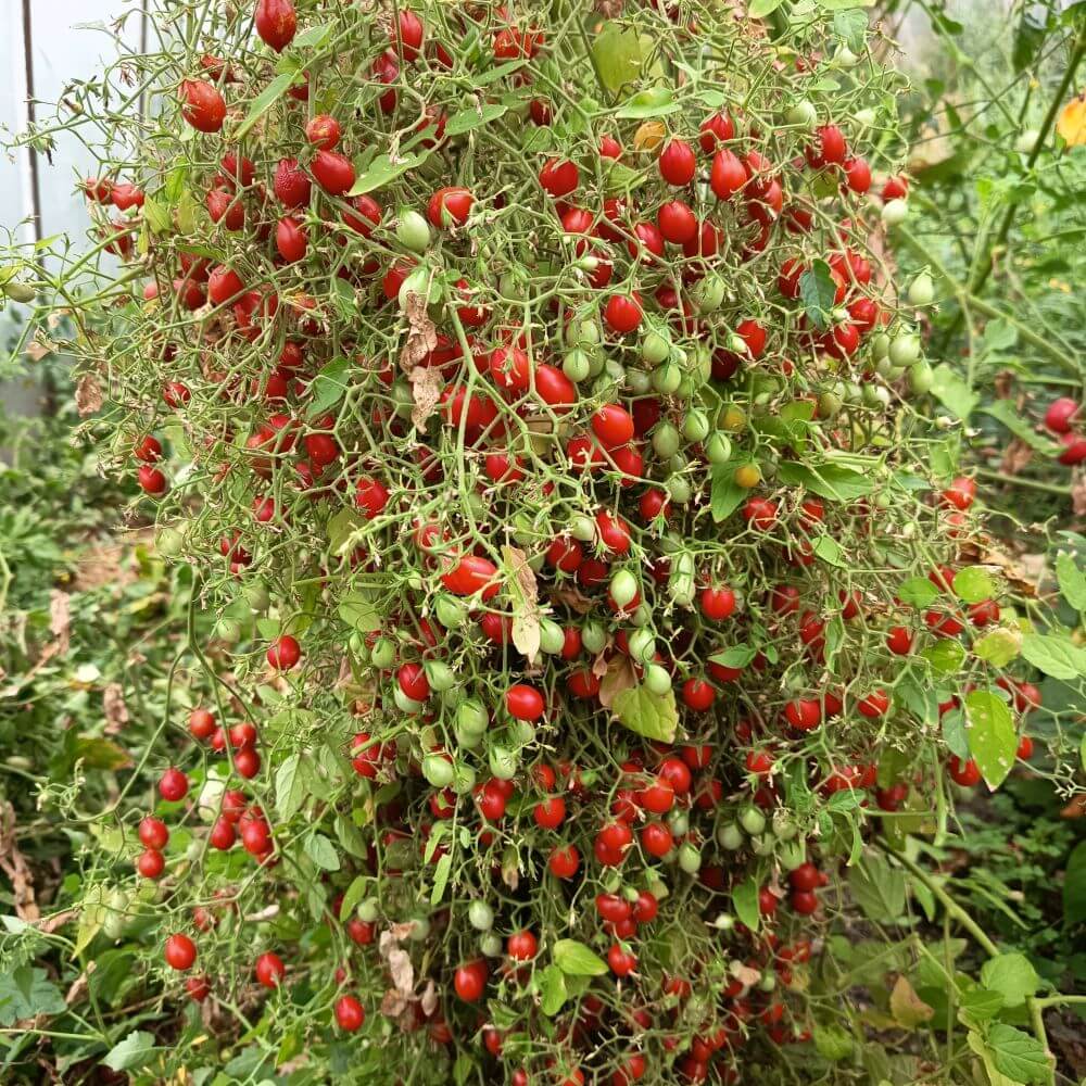 It is an indeterminate plant with very slender, delicate growth and fine, hairless shoots. The clusters are extremely large, capable of producing as many as 300–400 fruits each. Despite such heavy fruit set, the plant’s growth is not hindered, and it can reach heights of 3–4 meters.